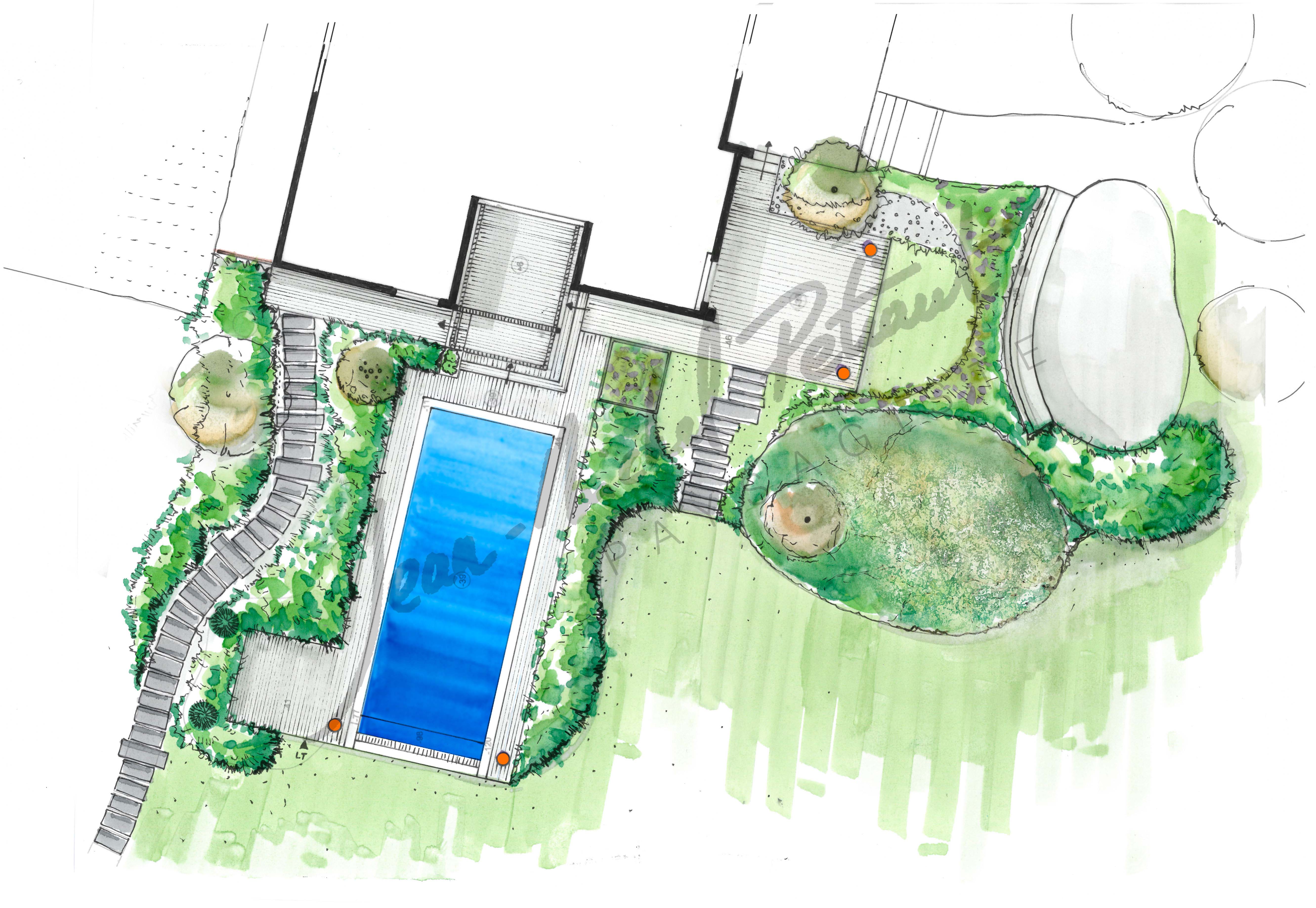 Jean-Michel Petiaut Paysagiste plan pour aménagement d’un jardin avec piscine